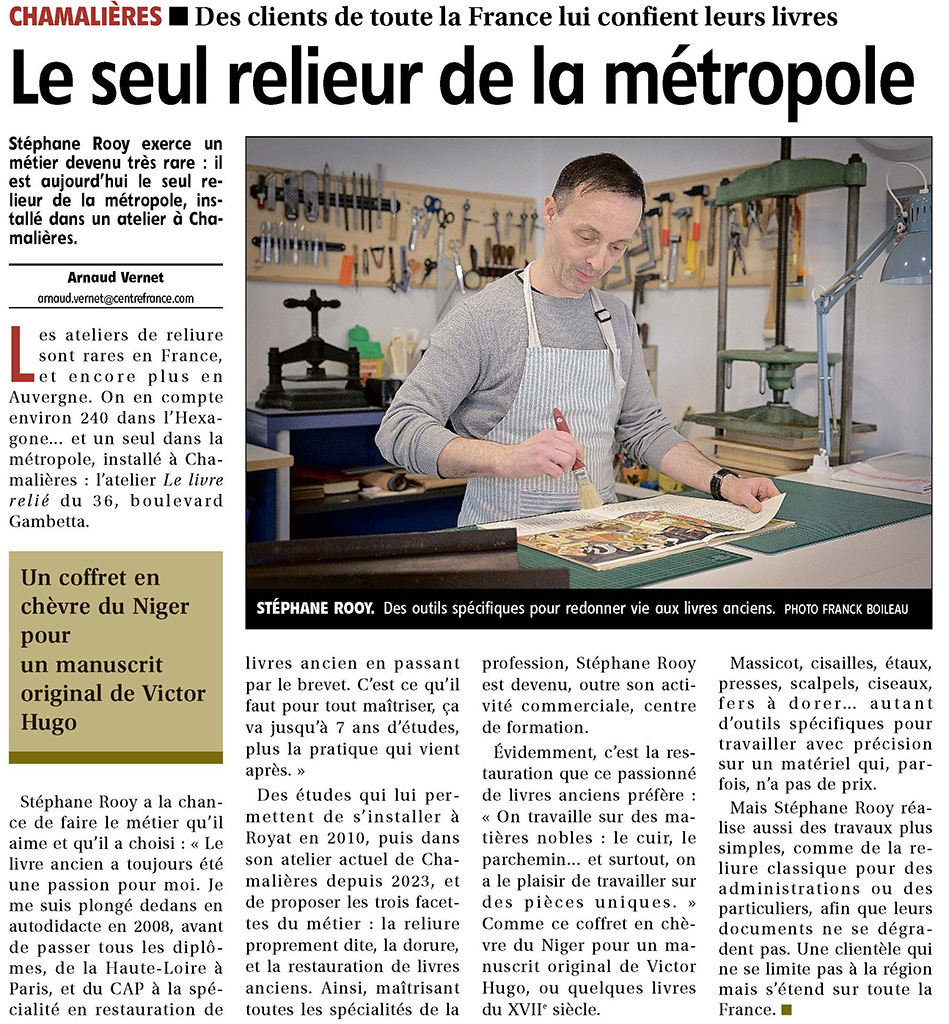 Reportage France3 Auvergne au sujet de l'atelier de reliure